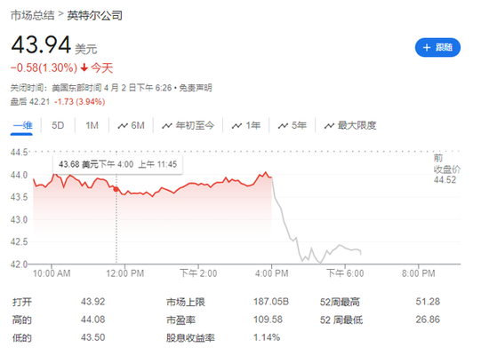 有分析指出,由于市场对英特尔短期内业绩下滑和晶圆代工业务前景的担忧,使其股价盘后跌超4%,年初至今累计跌幅13%。