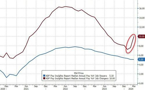 通胀一直在降温,但我们的数据显示,商品和服务的薪酬正在升温。”