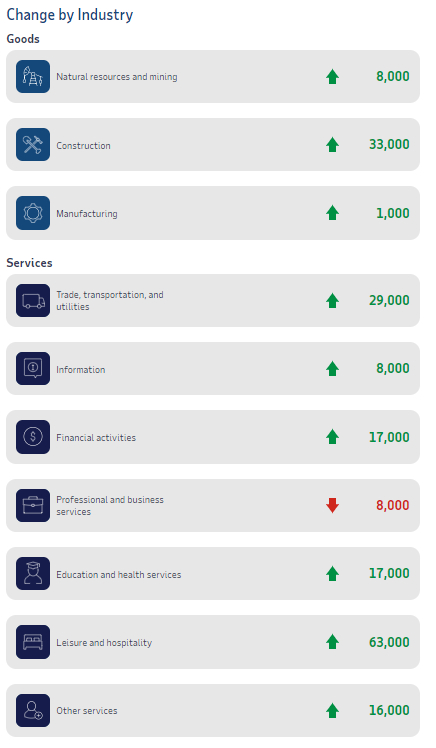 其中服务业就业人数增加14.2万人,休闲和酒店业就业人数创去年7月以来最大增幅,薪资增速持平上月。