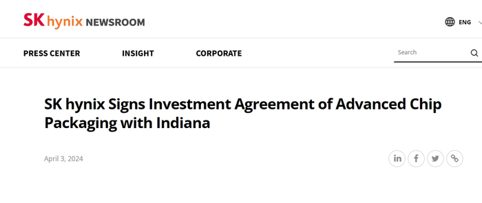 官宣!SK海力士将投资近40亿美元在美建芯片封装厂