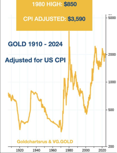 经美国CPI调整后的金价