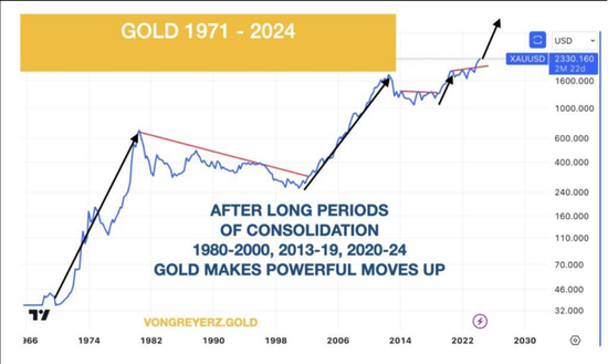 随着今年3月初黄金突破每盎司2100美元,Greyerz宣布“黄金已经起飞!”自此之后,黄金又上涨了约200美元,但这只是长期趋势性上涨的开始。