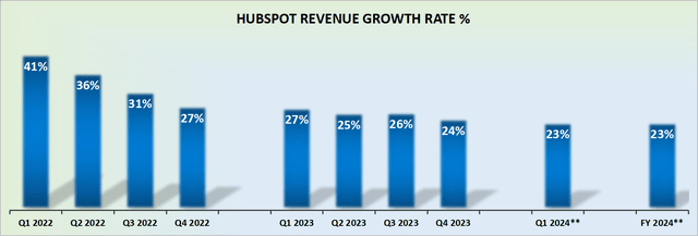 HubSpot的2024年全年指引指出,非GAAP运营利润率约为17%。然而,考虑到HubSpot在2023年第四季度已经实现了17%的非GAAP运营利润率,这自然意味着在未来12个月左右的时间里,还有更多的能量可以进一步提高效率和运营杠杆。