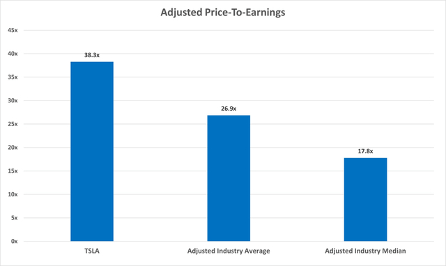 更具体地说,将特斯拉调整后的市盈率与全球汽车行业的市盈率进行比较,突显了特斯拉的严重高估。虽然特斯拉稳健的资产负债表和充满希望的未来在一定程度上证明了其较高市盈率的交易是合理的,但我认为,随着增长预期的下调,我们将看到市盈率的差异下降。