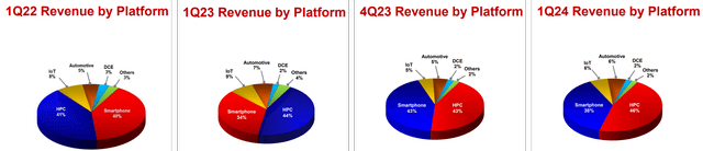 随着台积电继续报告,24年第1季度HPC的收入份额不断增长,达到46%(环比增加3个点/同比增加2个点),很明显,生成式AI需求仍然非常健康,正如该代工厂首席执行官在最新的报告中同样强调的那样财报电话会议: