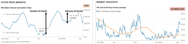 目前,麦克莱伦交易量总和指数已经放缓了-647点至1,108倍,VIX指数上涨了+5.93点至18.71倍,在自10月份以来的全市场大幅反弹之后,空头目前似乎已掌控局面。2023年底部。