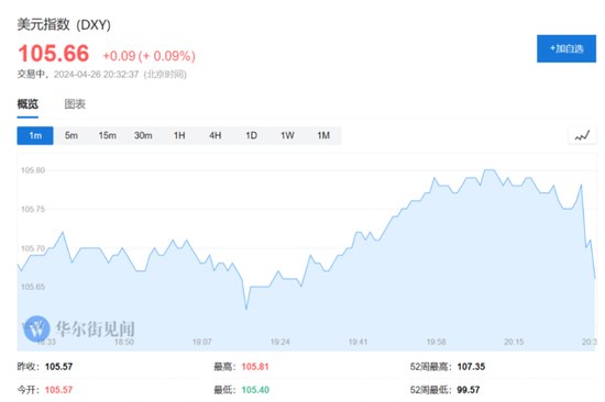 美元指数下行逾10点,报105.66。
