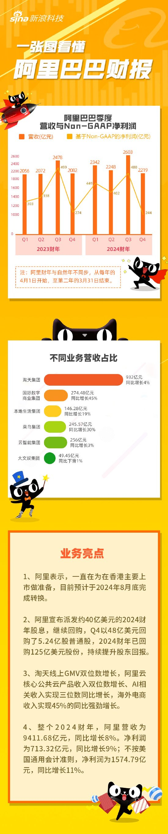 看图:阿里第四财季营收2218.74亿元 2024财年已回购125亿美元股份
