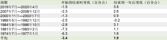 在过去的周期中,来自美联储的数据显示,平均而言,通货膨胀率在整个周期中继续下降(3.4个百分点),这主要是由于经济放缓的滞后影响。通常,经济放缓先于利率下降。