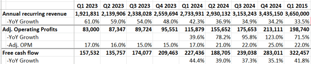 由于CrowdStrike的业务是基于订阅的,因此ARR增长率是其未来报告收入增长的绝佳领先指标。如前所述,CrowdStrike的ARR在过去几个季度一直以30%以上的速度增长。CrowdStrike继续实现30%以上的收入增长是必然的。