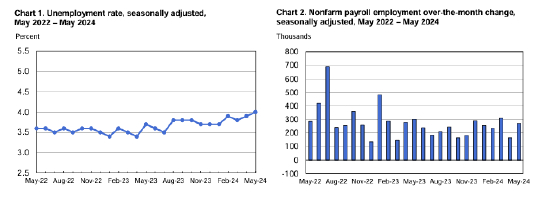 美国劳工统计局(BLS)今日发布了2024年5月份非农就业报告。报告显示,5月份非农就业人数增加27.2万人,失业率为4.0%,变化不大。在医疗保健、政府、休闲和酒店业以及专业、科学和技术服务等行业中,就业人数继续呈上升趋势。