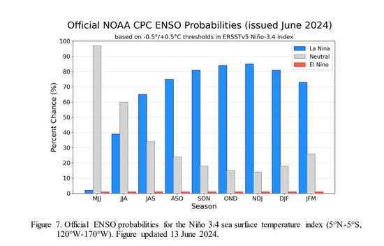 (拉尼娜现象将在今年夏天持续发展,来源:NOAA)