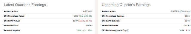 AMD继续复苏,与行业的新牛市周期保持一致。然而,其广泛的多元化仍然阻碍其实现1-2个季度前预期的增长率。最近的财务业绩略高于分析师的预测,但并不像一些人最初预期的那样令人印象深刻,导致对未来每股收益和销售预期进行负面修正。管理层的指引表明,利润率可能会继续增加,但仅比上一季度增加约100个基点,销售额同比增长将达到中等个位数,这还不错,但与我们从英伟达看到的情况无法相比。