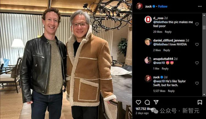 今年3月,小扎将自己与老黄照片po出来后,并称其为「科技界的霉霉」。