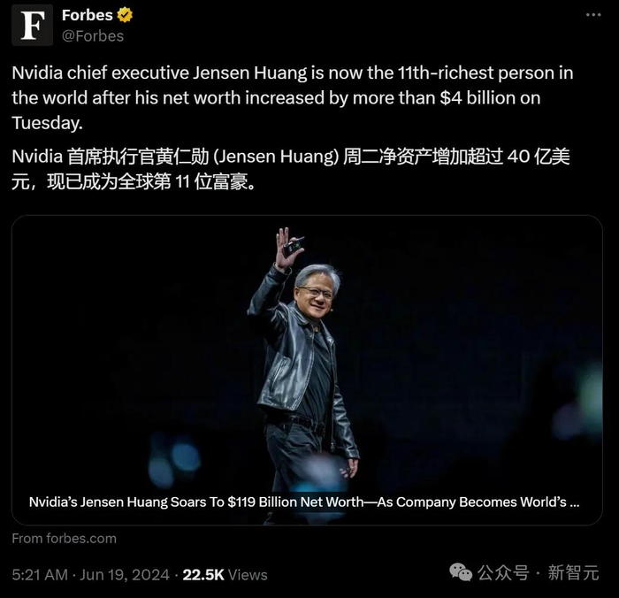而据福布斯报道,英伟达联合创始人兼CEO老黄的净资产已经增至约1170亿美元,成为全球第11富有的人。
