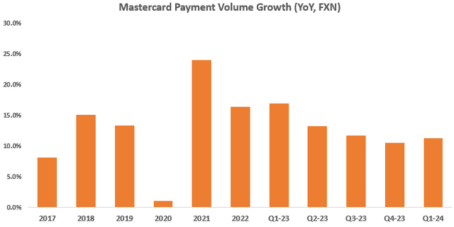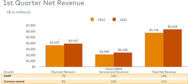 我们可以看到,万事达卡的激励措施更加激进,在2024年第一季度达到总收入的近40%。这是万事达卡管理层做出的战略决策,他们愿意牺牲利润来赢得客户。不过,这不会导致公司增长出现巨大差异,这也是分析师更喜欢Visa而不是万事达卡的一个关键原因。