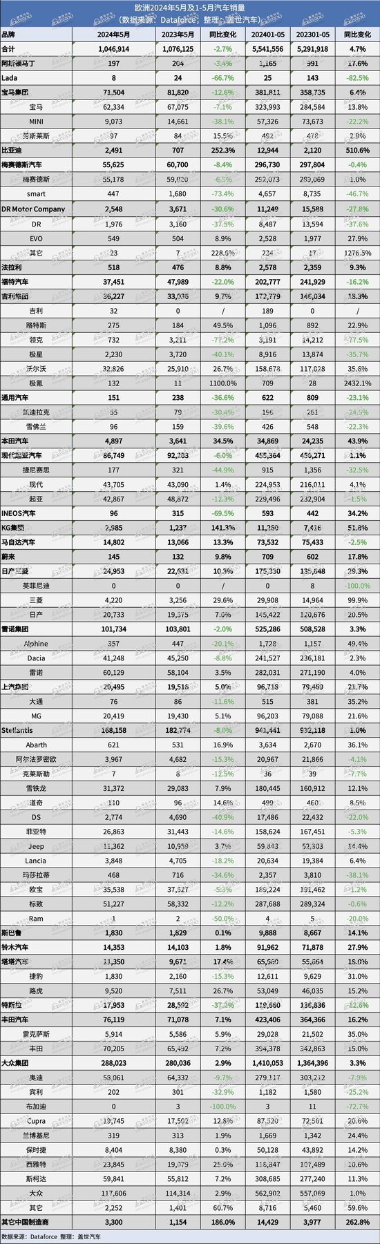 市场研究机构Dataforce的数据显示,今年5月,欧洲整体新车销量同比下降2.7%,但实现增长的车企数量依然多于销量下滑的车企。