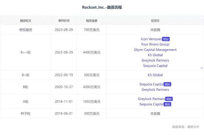 Rockset最近一次融资,是其在2023年8月获得4400万美元B+轮融资,使其融资总融达到1.05亿美元。
