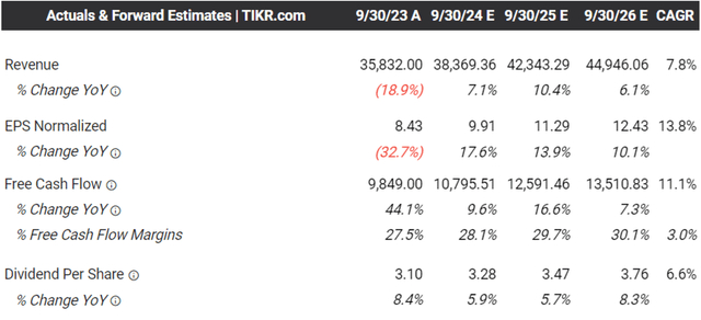 目前,预计高通到2026财年将实现加速的营收/利润增长,复合年增长率为+7.8%/+13.8%,而最初估计的营收/利润增长率分别为+5.4%/+8.8%和2016财年至2023财年的历史增长率分别为+6.2%/+9.6%。