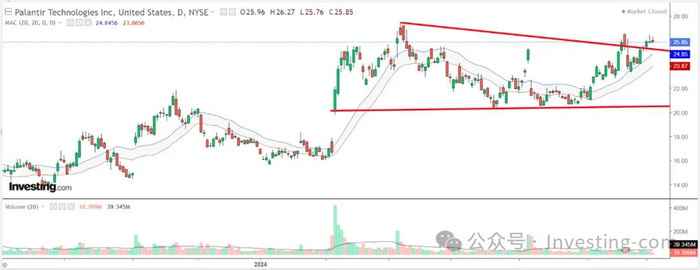 截至上周五(5日),Palantir的股价收于27.23美元,略低于3月7日创下的2024年高点27.50美元。今年以来,公司凭借在AI领域的领先地位,股价已上升超过50%。