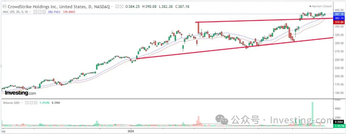 截至上周五,CrowdStrike的股价为389.68美元,略低于6月17日创下的394.64美元的盘中纪录高点。今年以来,公司股价表现显著优于大市,累计升幅约52%。