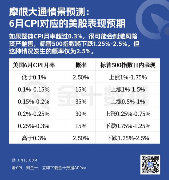根据预测,6月份核心CPI将环比上涨0.2%。泰勒认为,如果最终读数超过0.3%,这很可能会刺激风险资产的抛售,标普500指数将下跌1.25%至2.5%。但他认为这种情况发生的概率仅为2.5%。