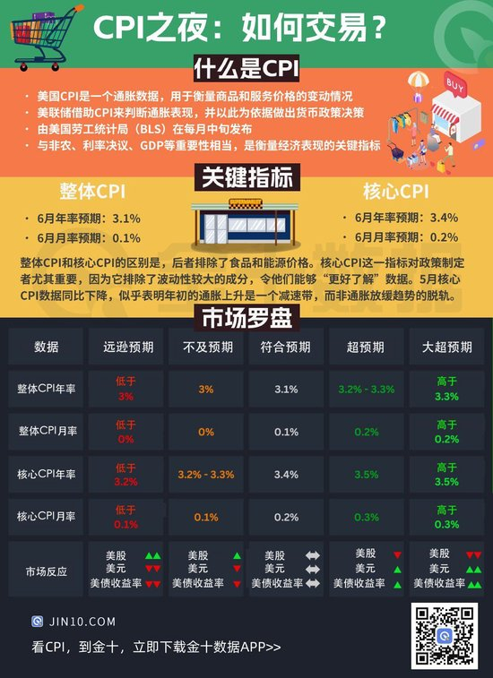 机构调查的经济学家称,经济学家预测周四晚20:30公布的6月CPI年率为3.1%,低于5月份的3.3%。然而,剔除波动较大的食品和能源行业后的核心通胀预计将保持不变,月率和年率预计分别为0.2% 和3.4%。该指标受到利率制定者的密切关注,5月份曾跌至三年低点3.4%,但经济学家预计即将公布的数据不会取得进一步进展。
