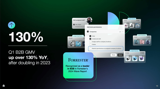 2024年第一季度,B2B GMV(商品交易总额)继上一年翻番后又大幅增长了130%,因此Forrester在其2024年Wave报告中将其评为品牌领导者。