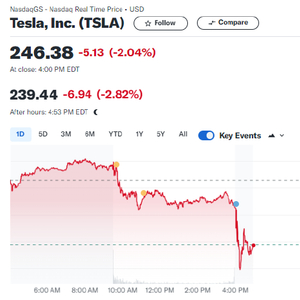 特斯拉股价在盘后交易中下跌超过2%,一度超3%。