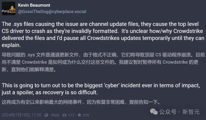 显然,事故中最重要的悬而未决的问题就是,这个「C-00000291-...xxx.sys」文件究竟是什么?