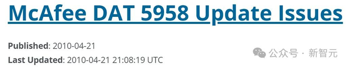 2010年4月21日早上6点,McAfee向企业客户发布了一个「有问题」的病毒定义更新。