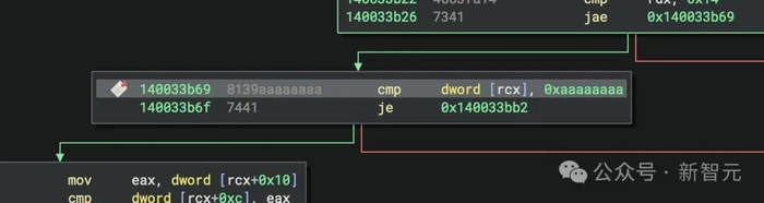 可以看到,rcx中与0xaaaaaaaa进行比较的值,由ExAllocatePoolWithTagPriority分配在顶部。那里正是接收ZwReadFile读取的数据的缓冲区。