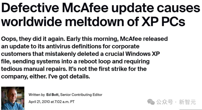 2010年在McAfee用一个更新搞崩全球设备的,竟然也是他!