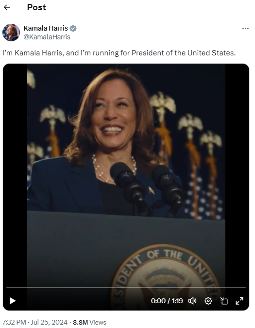 美国副总统卡玛拉·哈里斯决定在首支官方竞选视频中使用一位全球流行巨星的歌曲。这首歌正迅速成为她总统竞选活动的标志性曲目。