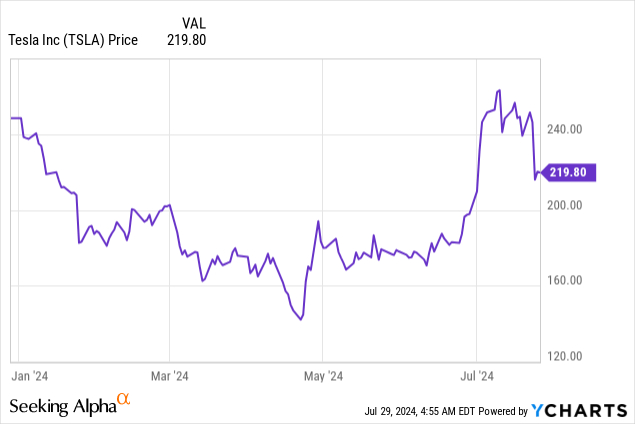 第二季度财报季正在如火如荼地进行,而特斯拉公司(NASDAQ:TSLA)是迄今为止最令人失望的公司之一。这家全球最大的电动汽车制造商今年迄今仍下跌两位数,在公布了平淡无奇的第二季度业绩后,股价已从近期高点下跌近20%。