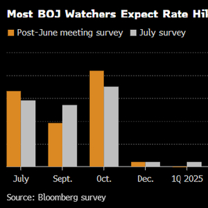 调查显示,在48位受访经济学家中,约14位预测日本央行将把利率从目前的0%调高至0.1%,而几乎没有人排除此举的风险。量化紧缩方面,该行将列出在未来一到两年内减少月度购债规模的计划。