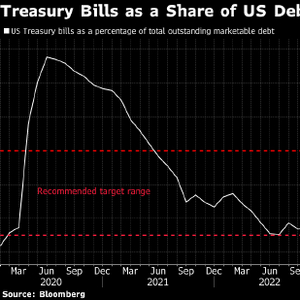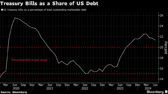 自去年年初以来,国库券供应增加了约2.2万亿美元,在总债务中所占的比例高于TBAC此前建议的15%-20%区间。