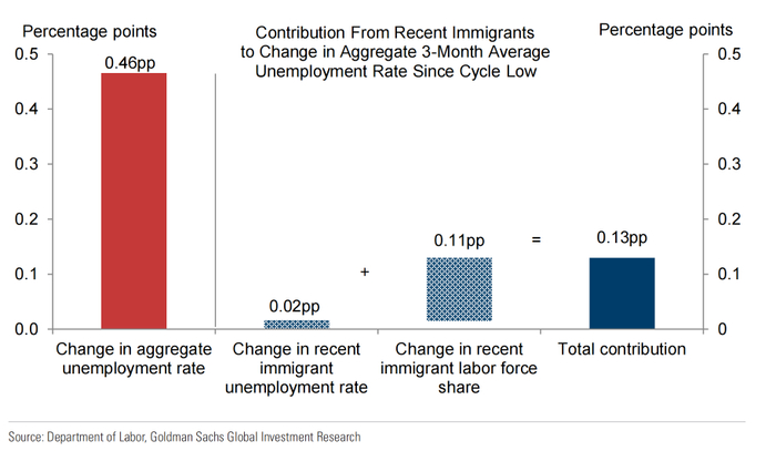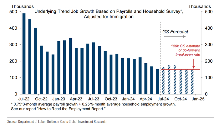 随着移民潮的减缓,高盛估计美国经济未来每月只需创造约15万个就业岗位即可让失业率保持稳定,接近对今年余下时间的预测。因此,高盛指出,美国的失业率将大致稳定在目前的水平。