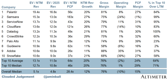 EV / NTM 收入倍数排名前 10 位