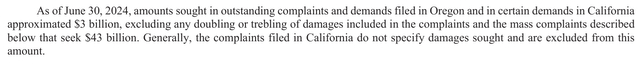 伯克希尔最近成为多起诉讼的对象。最引人注目的是针对伯克希尔哈撒韦能源公司旗下的 PacifiCorp 因俄勒冈州和加利福尼亚州的山火而提起的诉讼。本季度,我们看到伯克希尔计入了 2.51 亿美元的费用,但由于和解,一组诉讼的未偿债权从上一季度的 70 亿美元降至 30 亿美元: