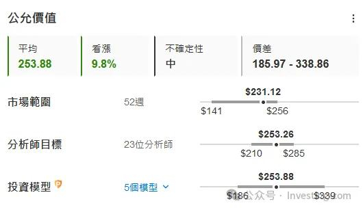 从估值角度来看,美国运通的公允价值为253.88美元,较目前价格高出9.8%。分析师对其的潜在价值也给予了高度评价,达到了253.26美元。