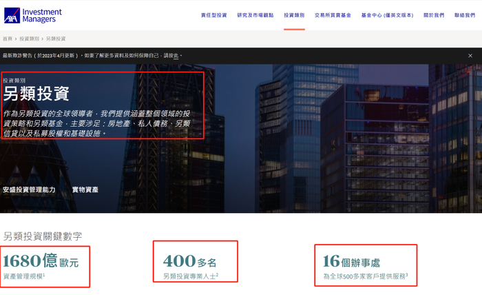这里不得不提下另类资产投资领域,安盛深耕多年,管理另类资产规模高达1689亿欧元,拥有全球16个办事处超过400多名另类投资专业人士,在另类投资领域安盛IM获奖无数。