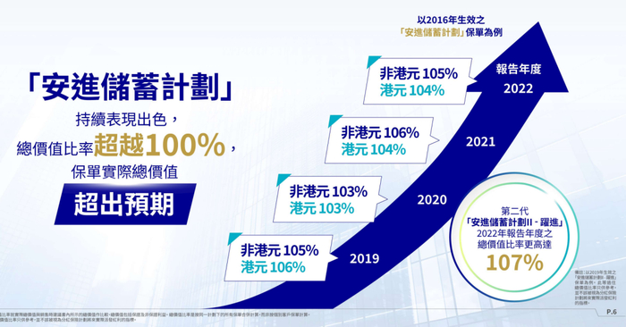 比如2016年生效的安盛安进储蓄计划,连续四年总价值比率超过100%,保单实际分红超出预期。
