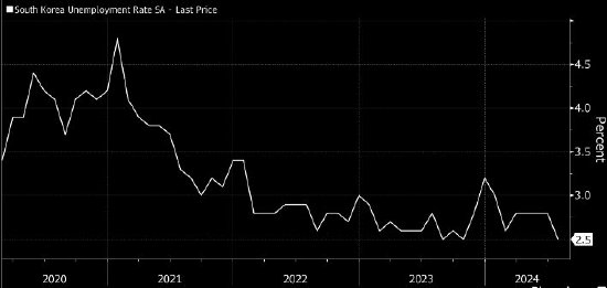 韩国失业率意外降至去年10月以来最低水平,给了韩国央行进一步推迟政策转向的动力。