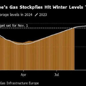 目前,充足的库存有助于抵消供应风险。尽管储量比去年同期略有下降——注入量在夏季有所放缓——但仍远高于5年平均水平。