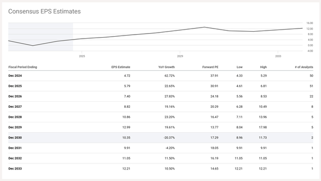 目前,分析师预测2029年每股收益约为12美元,这将使该股市盈率达到约15倍: