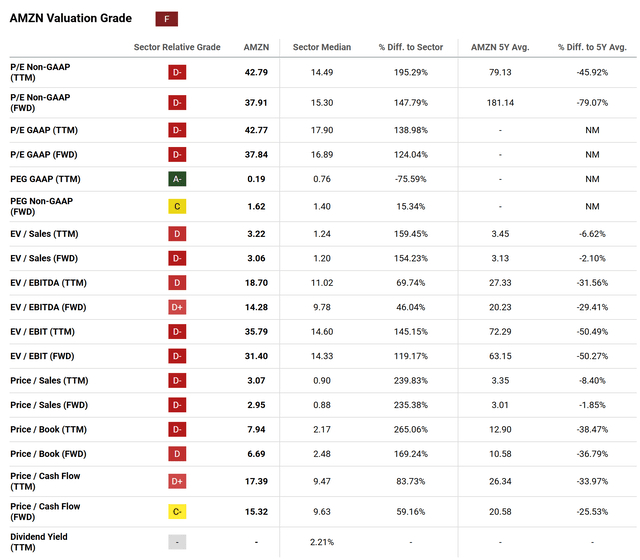 底线也是如此。量化系统从估值角度将亚马逊评级为“F”,这似乎有点激进: