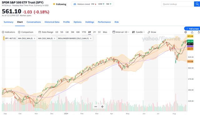 标准普尔500指数的收益似乎也像英伟达、MAGS、QQQ和SPY的图表一样达到顶峰。