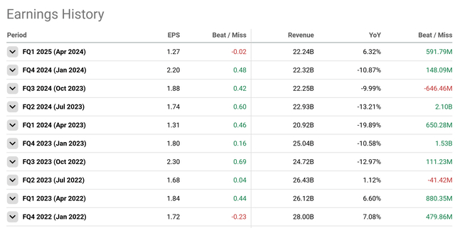在过去几个季度中,戴尔在盈利方面表现良好,尽管自2022年中期以来,营收增长一直难以实现: