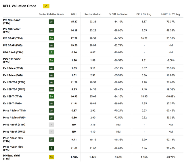 量化系统在估值方面将戴尔评为“C”,分析师认为这个评级略显慷慨:
